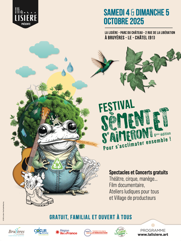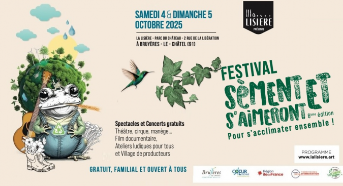 FESTIVAL SÈMENT ET S'AIMERONT 6e édition - Samedi 04 et dimanche 05 octobre 2025 à Bruyères-le-Châtel. Organisé par La Lisière et ses partenaires, Sèment & s'aimeront est un festival agri-culturel, familial et gratuit, qui se tient chaque année au cœur du Parc du Château de Bruyères-le-Châtel.
