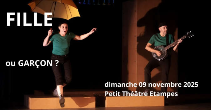 Fille ou garçon ? en représentation le dimanche 09 novembre 2025 au Petit Théâtre d'Etampes. Après le succès de leur spectacle « Sur la Nappe », Marion Rouxin et Éric Doria sont de retour avec « Fille ou garçon ? », un spectacle tout public de portraits chantés qui interroge la question de genre.