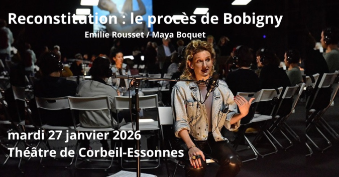 Reconstitution : le procès de Bobigny - Emilie Rousset / Maya Boquet, en représentation le mardi 27 janvier 2026 au Théâtre de Corbeil-Essonnes. Ce spectacle-témoignage explore le combat de Gisèle Halimi, avocate fondatrice de l’association « Choisir la cause des femmes », dans le procès de Marie-Claire Chevalier et de sa mère qui s’est tenu le 8 novembre 1972, pour l’avortement de la jeune fille suite à un viol et qui, au bout d’un combat judiciaire acharné, obtient la relaxe.