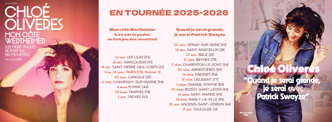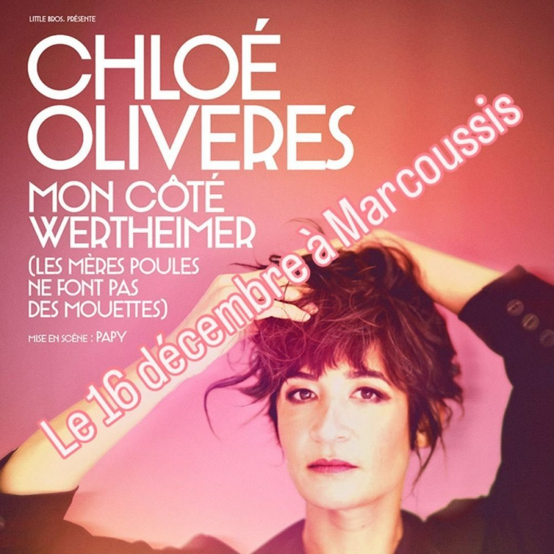 Mon Côté Wertheimer (les mères poules ne font pas des mouettes) en représentation le mardi 16 décembre 2025 à L'Atmosphère, Espace culturel Jean Montaru à MARCOUSSIS. Un spectacle seule en scène de et avec Chloé OLIVERES, mise en scène Papy. Chloé Oliveres est de retour : plus drôle, plus émouvante, plus décapante que jamais.