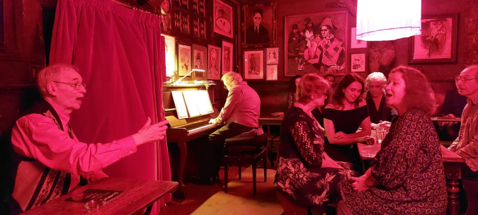 Le lieu a gardé son identité : la pièce est petite, quelques tables sont rassemblées, et chaque soir, autour d’un verre de guignolet, les chansons s’enchainent au son du piano, et sans sonorisation. Pas besoin ici, on a de la gouaille ! « Chante, oui chante », « les champs Elysées », « J’suis snob », « le tourbillon », « la parisienne », « sous le ciel de Paris », « Alouette », « Amstrong », « Sans amour on n’est rien du tout », « le Cinéma », « j’men fous pas mal », « Emmenez-moi »… les monuments de la chanson française se succèdent, tantôt à plusieurs, tantôt en solo, dans une ambiance qui vous emmène… et pendant 4 heures, de 21 heures à une heure du matin, ou l’on ne voit pas les minutes passer.