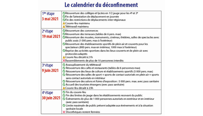 Retrouvez ci-dessous le calendrier du déconfnement :