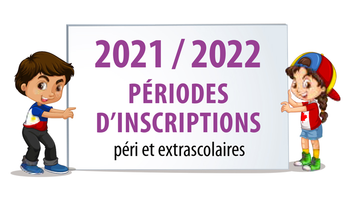 Retrouvez un récapitulatif des périodes d'inscriptions péri et extrascolaires pour l'année 2021-2022 dans le visuel ci-après :