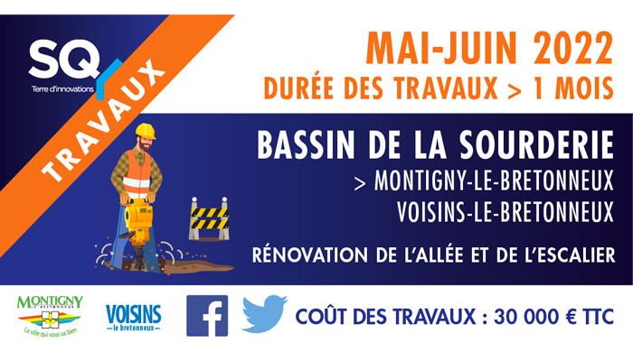 SQY engage des travaux de rénovation de l'allée et de l'escalier autour du bassin de la Sourderie, Montigny le Bretonneux - Voisins-le-Bretonneux.