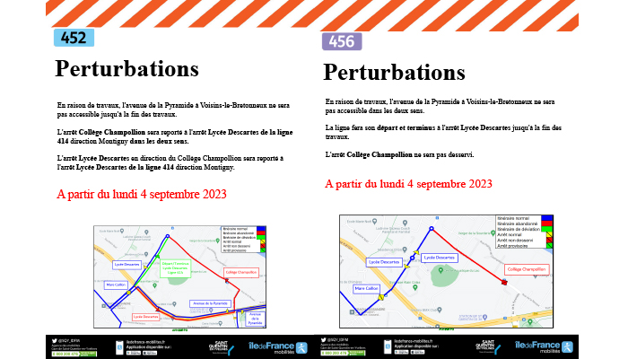 Les déviations des lignes de bus 452 - 456 ont donc été mises en place (voir ci-dessous) :