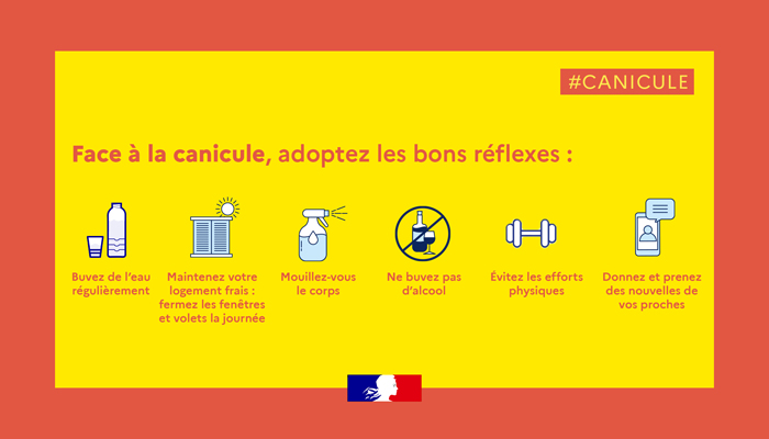 Quelques conseils face à la canicule et aux fortes chaleurs :