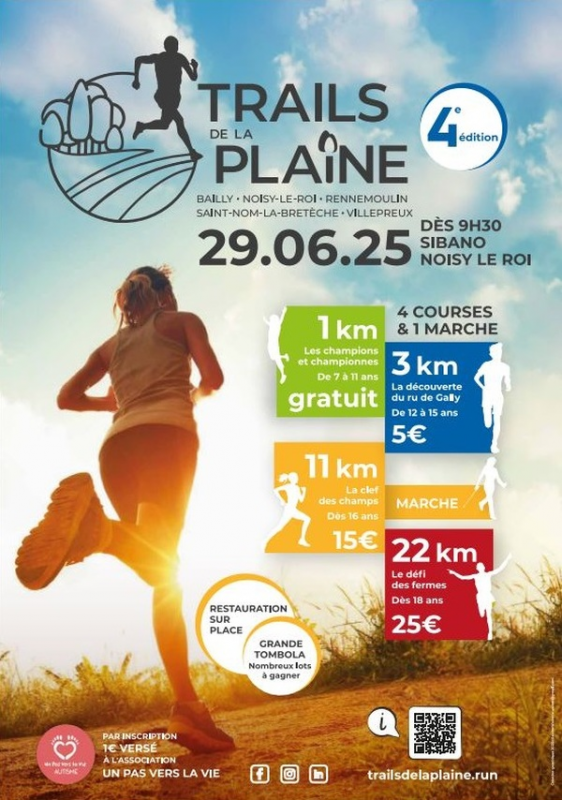 TRAILS DE LA PLAINE 4e édition - Dimanche 29 juin 2025 dans le cadre exceptionnel de la Plaine de Versailles. Les Trails de la Plaine sont organisés par l’association « Les Trails de la Plaine » avec le soutien des communes de Bailly, Noisy-le-Roi, Saint-Nom- la-Bretèche, Rennemoulin, Villepreux et l’Etang la Ville, avec l’aide précieuse de Versailles Grand Parc.