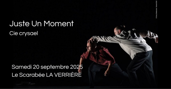 Juste Un Moment, en représentation le samedi 20 septembre 2025 au Scarabée à LA VERRIÈRE. La scène de Saint-Quentin-en-Yvelines ouvre sa saison sur la création 2024 de la Cie crysael Juste Un Moment, chorégraphiée et interprétée par Chris West et Gaël Grzeskowiak. Entrée libre sur réservation.