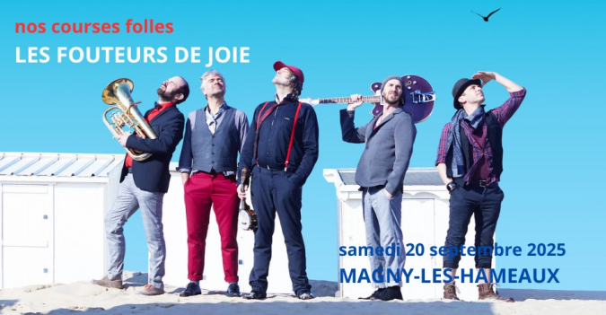 LES FOUTEURS DE JOIE ouvriront la saison samedi 20 septembre 2025 à la Maison de l'environnement à Magny-les-Hameaux. La Ville de Magny-les-Hameaux ouvre sa saison culturelle 2025-2026 autour du spectacle des Fouteurs de Joie : Nos Courses Folles ! Ce quintet à l’énergie débordante, présente un spectacle musical et visuel où chanson, théâtre et poésie se mêlent à l’absurde.