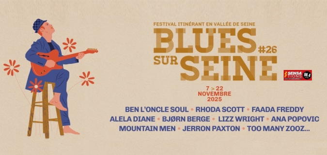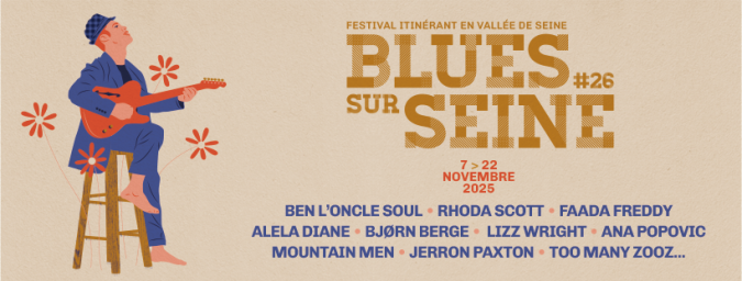 BLUES SUR SEINE 26e Édition - Du 07 au 22 novembre 2025 - Vallée de la Seine, Yvelines. Le festival itinérant Blues sur Seine est de retour en Vallée de la Seine, Grand Paris Seine & Oise, pour une 26ème édition à découvrir du 07 au 22 novembre 2025.