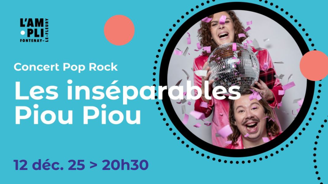 Les inséparables Piou Piou en concert le vendredi 12 décembre 2025 à L'AMPLI à Fontenay-le-Fleury. Les Inséparables, c’est Piou : Solène et Piou : Louis, deux petits oiseaux aux couleurs multiples qui ne se séparent jamais.