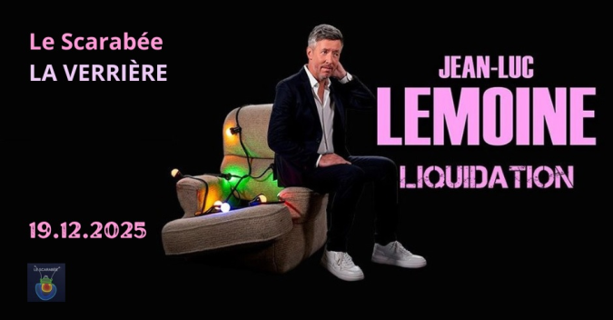 Jean-Luc LEMOINE dans « Liquidation », le vendredi 19 décembre 2025 au Scarabée à LA VERRIÈRE. Jean-Luc Lemoine vous attend au Scarabée avec « Liquidation », un nouveau spectacle qui explore une société à la dérive, où les complots sont plus nombreux que les likes sur une photo de chat.