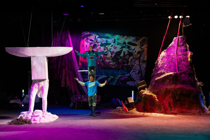 Le personnage principal : cette forêt-monde qui s’incarne dans un univers exubérant aux accents pop, où se mêlent agrès de cirque insolites, accessoires empruntés à l’opéra et symboles traditionnels. À travers ce mélange des genres, les artistes s’engagent corps et âmes pour déconstruire nos imaginaires et nous réconcilier avec le vivant.