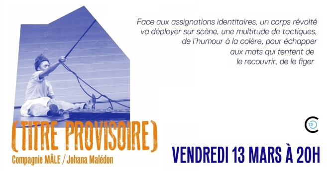 (Titre provisoire) Compagnie MÂLE - Johana Malédon, en représentation le vendredi 13 mars 2026 au Collectif 12 à Mantes-la-Jolie. Pourquoi (titre provisoire), parce que tout comme ce corps qui va danser devant nous refuse les étiquettes qui lui sont imposées, ce solo, lui, ne se laissera pas nommer.